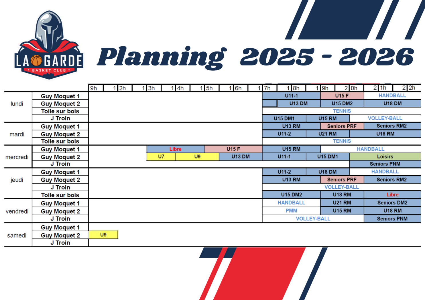 Découvrez dès maintenant le planning officiel des entraînements du Basket Club La Garde pour la saison 2025 – 2026.